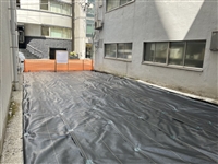 上記の写真は東京都内の建物解体後の一時的な雑草防止として、更地に防草シートの施工をさせていただきました。